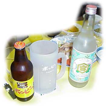 オリオンビールの生で乾杯。うーん、面白い味だね。